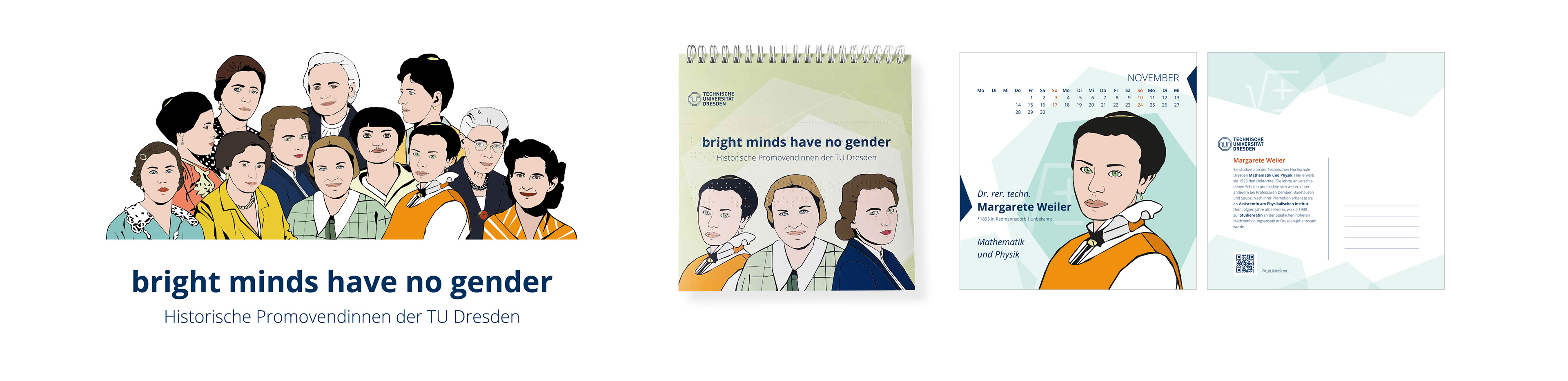 BRIGHT MINDS HAVE NO GENDER Postkarten-Kalender (Braille Schrift) stellt zwölf Wissenschaftlerinnen vor die durch ihr Wirken die Hochschule geprägt haben